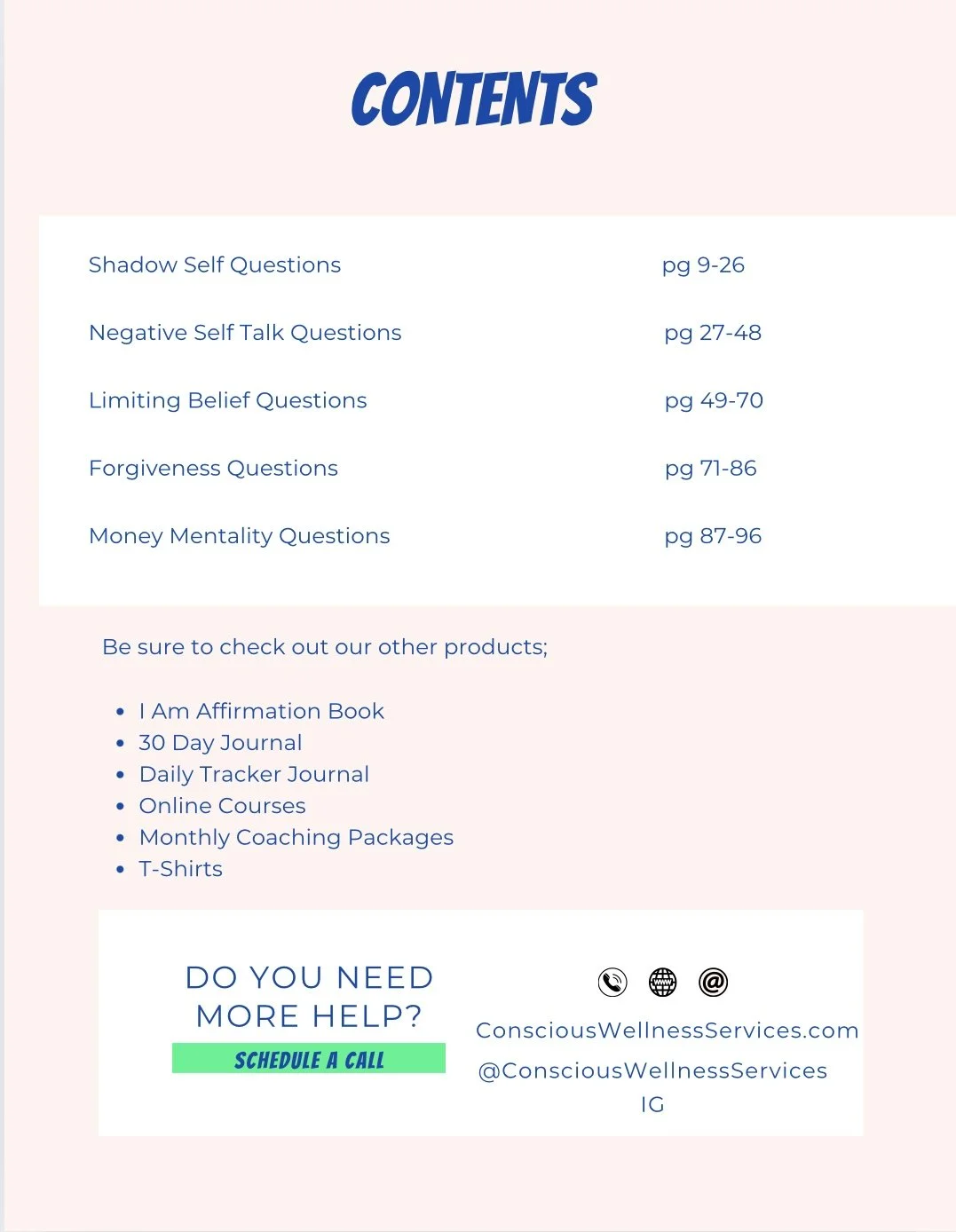 Life Coaching Workbook 1.0 $77.00 Life Coaching Workbook 2.0 $77.00 I Am Affirmation Book $77.00 Life Coaching 1.0 E-BOOK $44.00 Life Coaching 2.0 E-BOOK $44.00 Unisex Take Care Be Well T-shirts Blue Font from $33.00 Unisex Take Care Be Well T-shirts Cream Font from $33.00 Take Care Be Well Eco Tote Bag $33.00 Take Care Be Well Eco Tote Bag Black $33.00 Unisex Take Care Be Well Hoodies Blue Font from $55.00 Unisex Take Care Be Well Hoodies Cream Font from $55.00 Unisex Love Yourself T-shirt White Font from $33.00 Unisex You Are Enough T-shirt White Font from $33.00 Unisex You Are Enough T-shirt Black Font from $33.00 Conscious Wellness Services Travel mug with a handle from $25.00 Unisex Love Yourself T-shirt Black Font from $33.00 Take Care Be Well Pet Bowl $35.00 Conscious Wellness Services Can-shaped glass with lid $18.00 Conscious Wellness Services Hardcover Bound Notebook $17.00 Conscious Wellness Services Stainless Steel Water Bottle with a straw lid $30.00 Conscious Wellness Services Spiral Notebook $17.00